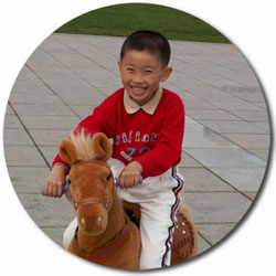 一次我带外孙去儿童乐园,外孙骑在木马上总想让木马跑起来,我一下想到木牛流马。试想一个三、五岁的儿 童骑在一个玩具马上,在公园来回奔跑一定非常好。我把想法对女儿及外孙一说,他们都非常高兴,于是,我用了一年时间做出了第一匹"木牛流马"。可是谁知待外孙第二年春节来试骑的时候,这匹马只走了一步,第二步怎么也走不动了。